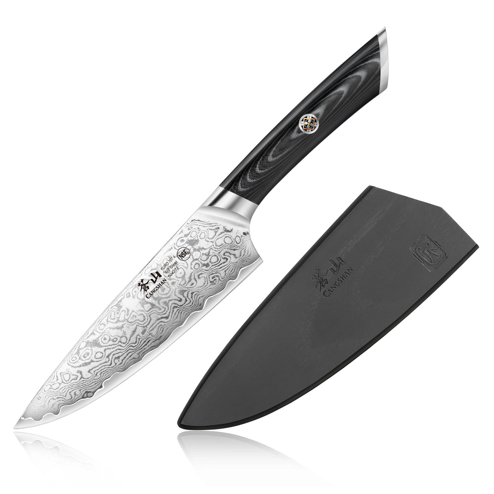 TS Series 5-Inch Santoku Knife with Wood Sheath, Forged Swedish 14C28N Steel, 1020823